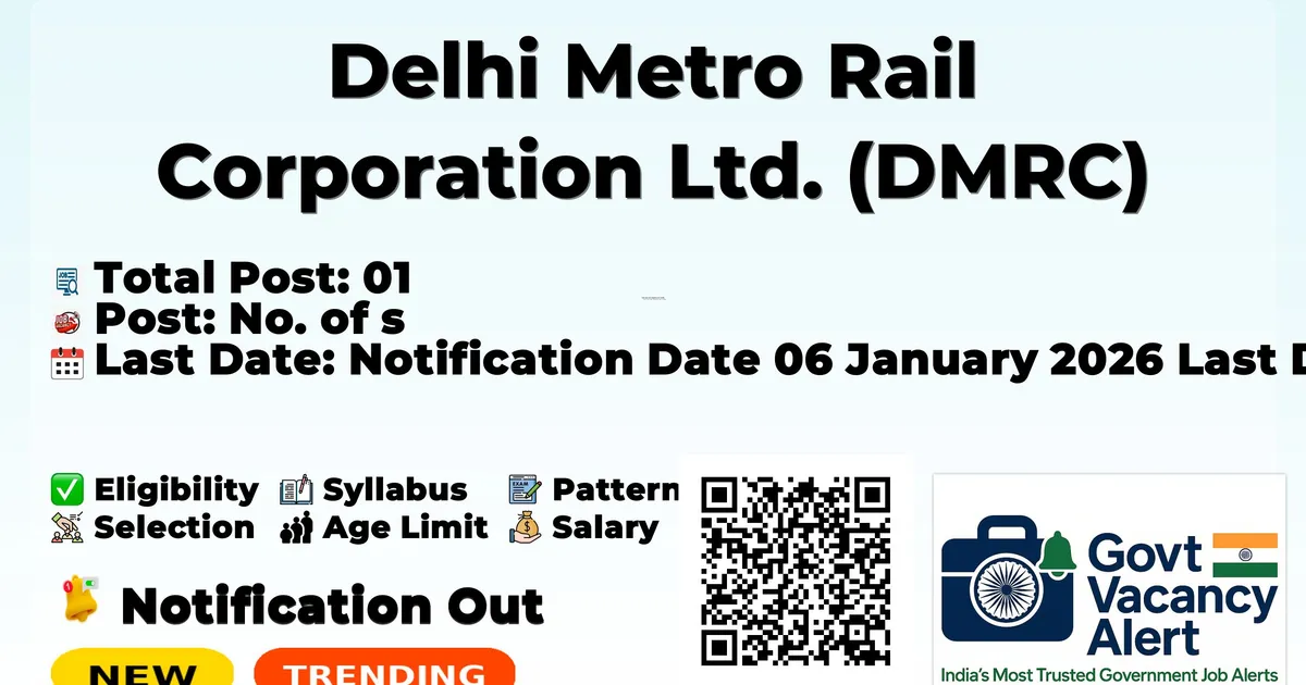 Vacancies are provisional and subject to increase/decrease. Reservation shall be applicable as per GOI rules for engagement on Fixed term Contractual basis. The incumbent of the post shall be responsible for Legal, Finance and contract management works related to Delhi Metro Rail Corporation for Mumbai Metro Line-3, in Mumbai. The incumbent for the post shall initially be posted at Mumbai. However, the selected candidates shall be liable to be posted / transferred to any of the offices / Project sites under the control of the Corporation in India, or, abroad. The engagement on Fixed Term Contractual Engagement (FTCE) basis shall be for a period of 03 (three) years, which can be extended further, subject to the requirement of the corporation, on the basis of satisfactory performance. The selected candidates shall be engaged on contractual basis, and shall have no claim of regularization in the future. TA/DA would be admissible, if deputed on outstation duty, for which he/she shall be paid TA/DA as per the entitlement applicable for corresponding level of employees. The contract engagee shall be entitled for 08 days Casual Leaves (CL) on pro-rata basis and 18 Earned Leave (EL) (i.e. 1.5 EL for each completed month of service). On expiry of the term mentioned in the engagement order, the engagement shall stand terminated automatically. The engagement can be prematurely terminated by either side by giving one-month notice period, or, remuneration, in lieu thereof. The candidate shall have no claim, whatsoever, for continued engagement, or, for any regular employment in the company, under any circumstances. Fixed term engagement shall be made strictly on the basis of the prescribed norms. In case any particulars/information furnished by the candidate is found to be false, or, incorrect, the fixed term engagement shall be deemed to be void ab-initio and the engagement shall be terminated forthwith. The Consolidated remuneration shall remain fixed throughout the period of Fixed Term Appointment and there shall be no increase in the remuneration on completion of the fixed term period. The remuneration shall be proportionately reduced in case of absence from work. The selection of the candidate shall not confer any right to engagement unless the Corporation is satisfied after such an inquiry, as may be considered necessary, that the candidate having regard to his/her character and antecedents is suitable in all respect for contractual engagement. The candidate selected for the post will have to execute a Surety Bond of Rs.1,00,000/-and cost of Training and shall have to serve the Corporation for a minimum period of two years (exclusive of the period in which one remains on Leave without Pay). One-month prior notice shall be required before seeking resignation from the corporation. All related information shall be available only on the Website: http://www.delhimetrorail.com and candidates must regularly check the website for the updates. Last date of receipt of duly filled in application (along with relevant documents) through Speed Post OR email shall be 27/01/2026. Incomplete applications or applications received after the due date shall be summarily rejected. DMRC shall not be responsible for loss/delay in post. While applying for the post, the applicant should ensure that he/she fulfills the eligibility and other norms mentioned above on the specified dates and that the particulars furnished by him/her are correct in all respects. In case, it is detected at any stage of recruitment that a candidate does not fulfill the eligibility norms/criteria and/or that he/she has furnished any incorrect/false information or has suppressed any material fact (s), his/her candidature will stand cancelled. If any of these shortcomings is/are detected even after engagement, his/her services are liable to be terminated. The validity of the panel shall be two years from the date of its approval. The selection of candidate by DMRC does not confer any right to the candidate for engagement. The candidates presently employed in Govt. sector/Central Public Sector Undertaking (CPSUs) should send their application through proper channel along with Vigilance and D&AR clearance in the attached pro-forma at Annexure-II, so as to reach the below mentioned address within the stipulated time. Candidates should keep sufficient numbers of same Photographs in reserve for future use, which they use in the application form. Request for change of mailing address /e-mail address and Mobile Number will not be entertained under any circumstances. Court of jurisdiction for any dispute will be at Delhi only. DMRC reserves the right to fix the minimum standard/qualifying marks for each component of selection for the post. No TA/DA shall be paid for attending written test/Medical examination/ joining duty on selection. Candidates must remain in constant touch with DMRC’s website www.delhimetrorail.com for information regarding dates of Written Examination, result of Written Examination, schedule for Medical test, etc., Canvassing in any form will disqualify the candidate. Candidates should refer to the advertisement given in the Employment News, or, on DMRC’s website only, for the purpose of applying for the jobs. DMRC has not authorized any other agency/vendor/website to publish the instant advertisement and application form, or, issue of admit cards online. In case of any discrepancy in advertisements published in various newspapers/Employment News, etc., the contents as available on the DMRC’s website, i.e., www.delhimetrorail.com, will prevail. Any update, corrigendum, etc., of this advertisement will be posted in the DMRC’s website only. Hence, candidates are requested to keep in regular touch with the website, i.e., www.delhimetrorail.com