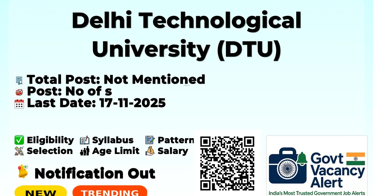 Company Name Delhi Technological University (DTU) Post Name Incubation Associate No of Posts Not Mentioned Pay Matrix Rs.35,000 - 42,350 Qualification MBA/PGDM Age Limit 35 years Last Date for Apply Online 17-11-2025 Official Website dtu.ac.in