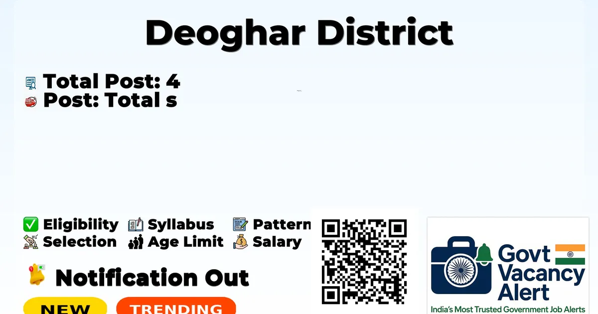 Deoghar District Staff Notification 2026 has been released on 30 March 2026 on the official website of Deoghar District. A total of 4 vacancies have been announced through the Deoghar District Staff Recruitment 2026.