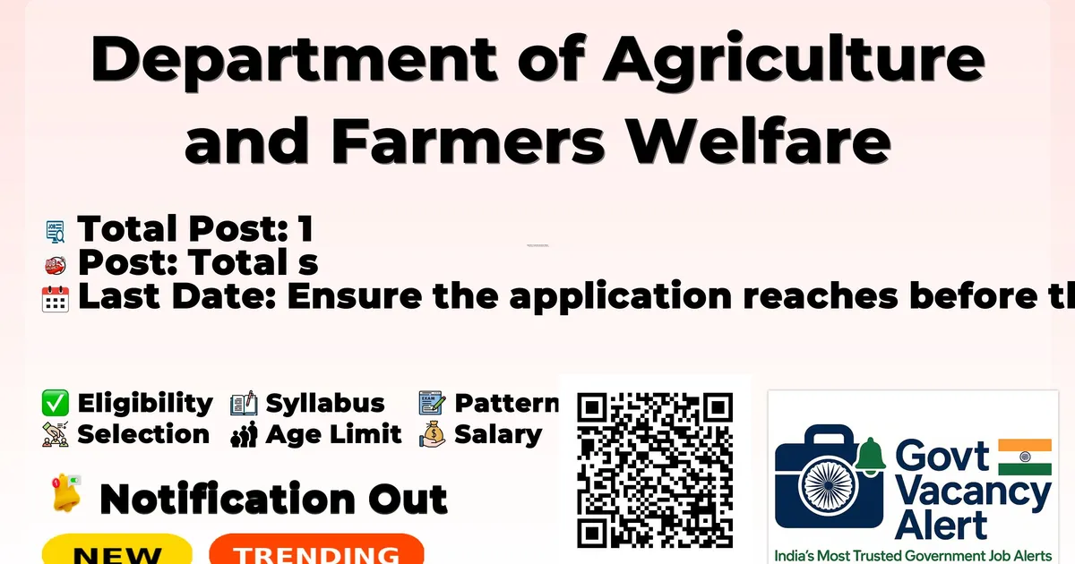 Candidates should download and read the Department of Agriculture and Farmers Welfare Jobs 2026 notification PDF carefully to check vacancy details, eligibility, age limit, and application instructions. The notification also includes important dates and selection process details. The direct download link is available in the Important Links section below.