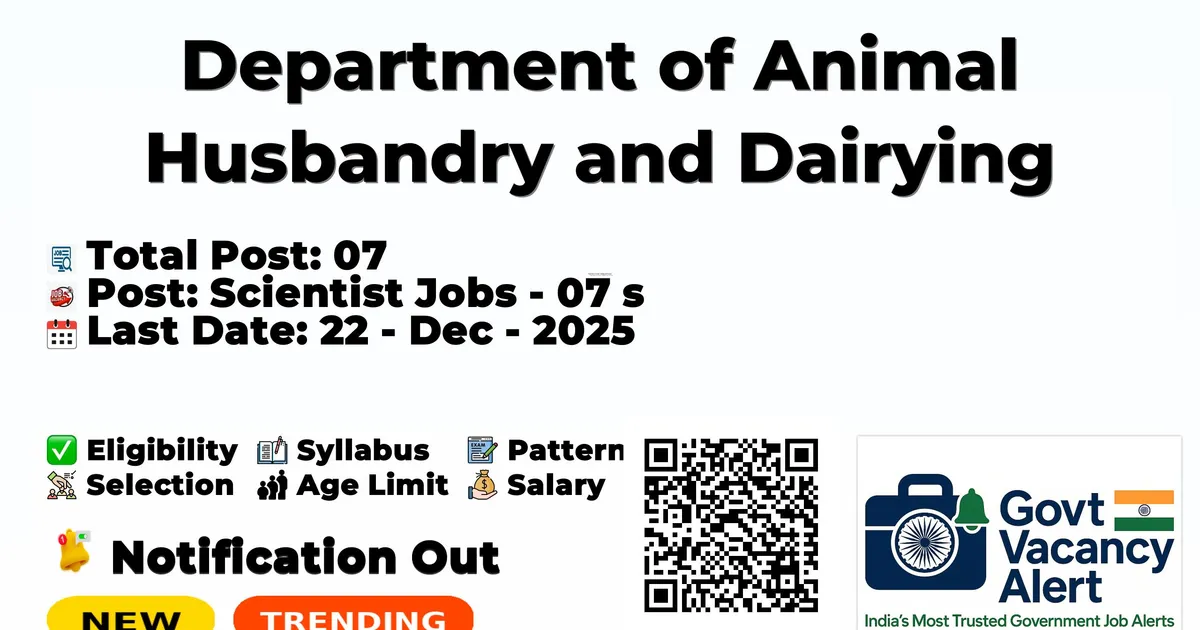 Department of Animal Husbandry and Dairying — Scientist Jobs - 07 Posts