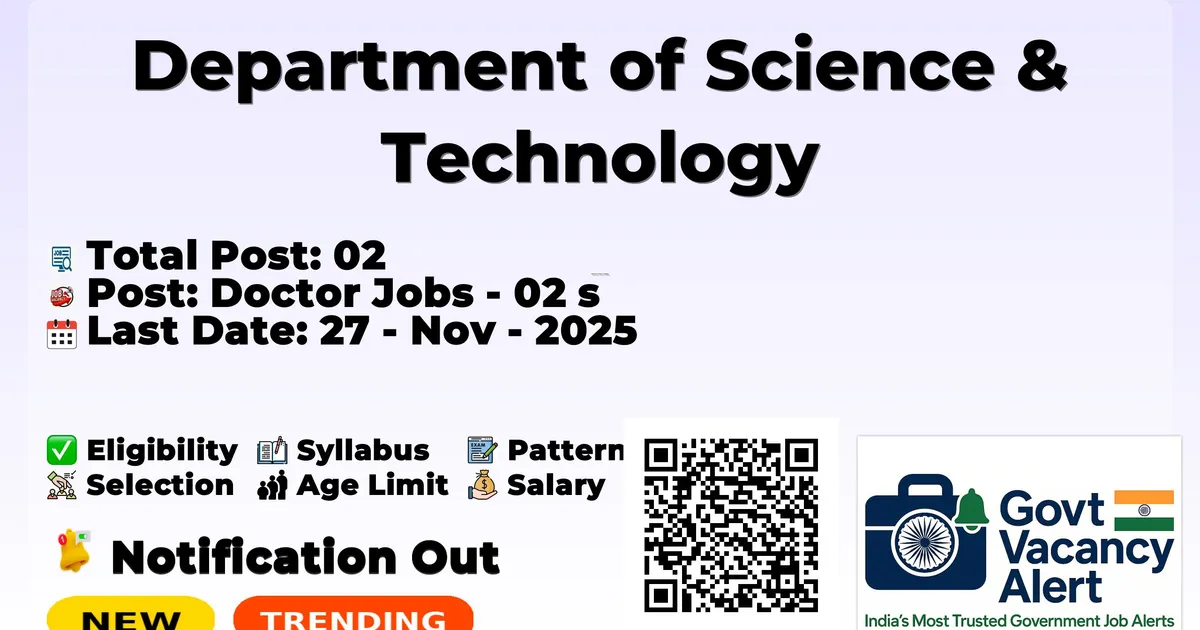 Department of Science & Technology — Doctor Jobs - 02 Posts