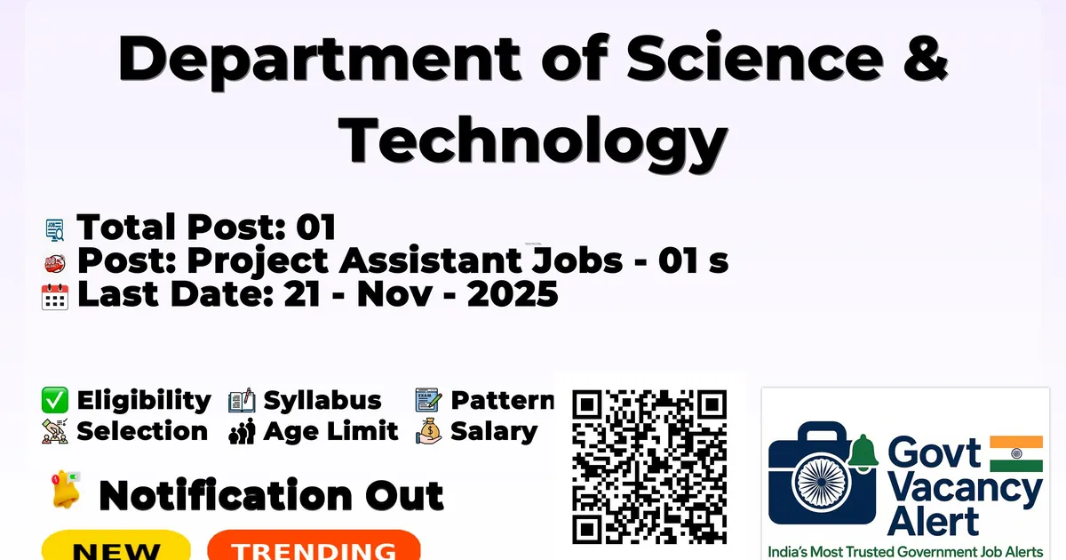 Department of Science & Technology — Project Assistant Jobs - 01 Posts