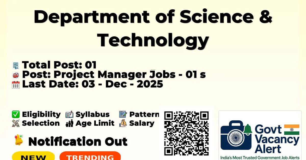 Department of Science & Technology — Project Manager Jobs - 01 Posts