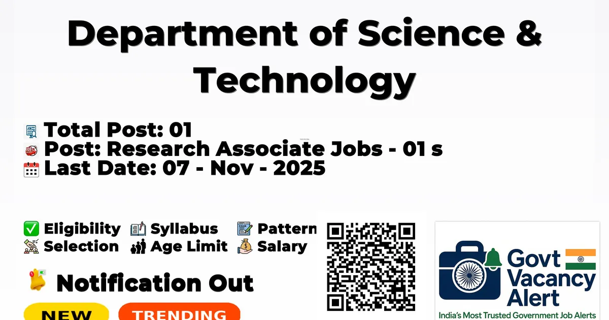 Department of Science & Technology — Research Associate Jobs - 01 Posts