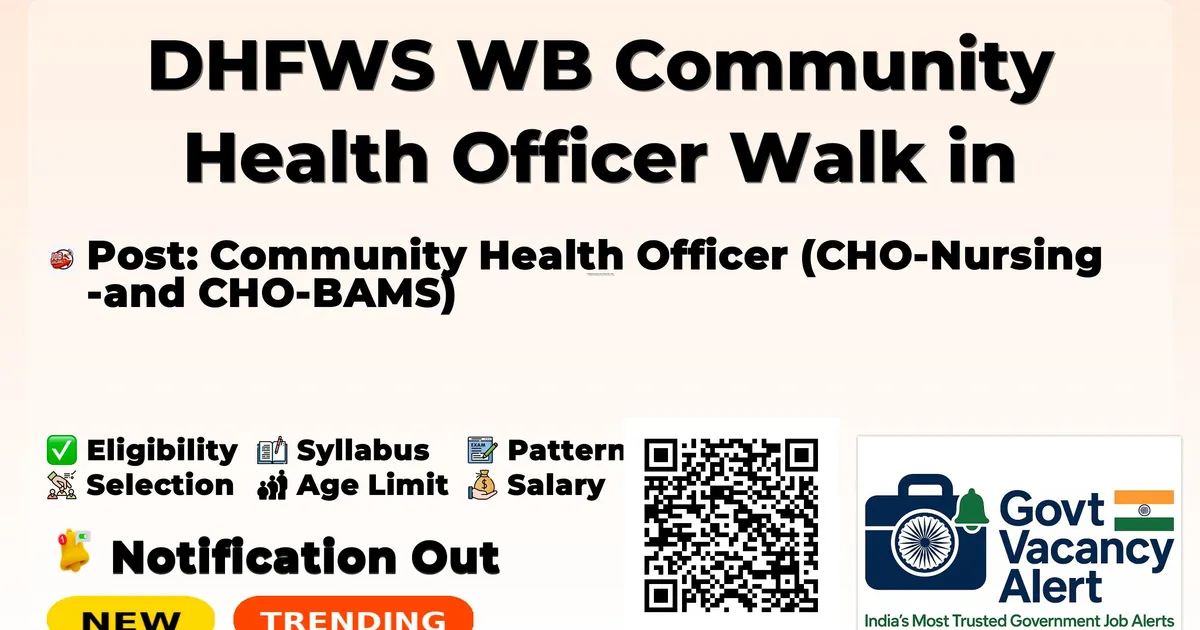 Details Information Organization Name District Health & Family Welfare Samiti, Bishnupur Health District (DHFWS BHD) Post Name Community Health Officer (CHO-Nursing and CHO-BAMS) Total Vacancies CHO-Nursing: 21, CHO-BAMS: 2 Posts Salary/Pay Scale ₹20,000–25,000 per month (with incentive) Educational Qualification B.Sc Nursing/BAMS as per post (details below) Age Limit 21 to 40 years (Relaxation as per govt. norms) Walk-In Date 15/12/2025, 16/12/2025 Application Mode Walk-In (Document Submission) Official Website www.wbhealth.gov.in