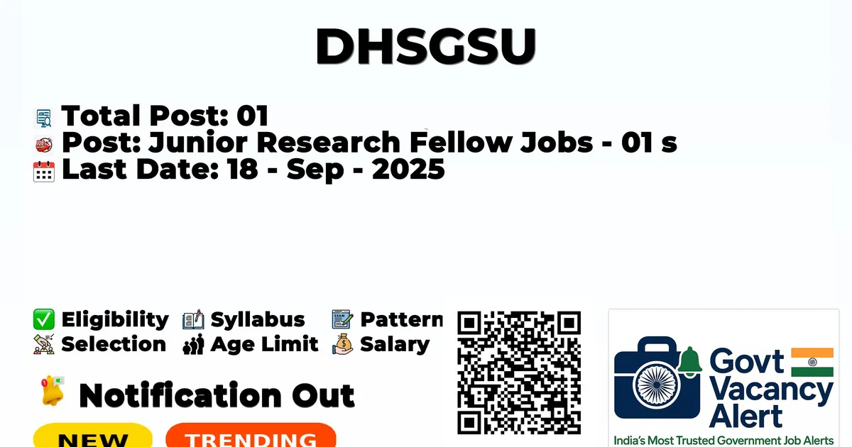 The Dr. Hari Singh Gour University (DHSGSU) has officially released the notification to fill the vacancies of 01 Junior Research Fellow Posts. Interested and eligible candidates can use this opportunity to apply for these posts before the last date of application. Candidates who have completed their M.E./M. Tech, M.Sc., can apply for the DHSGSU Recruitment 2025. The interested applicants can attend the walk-in interview., Here we have mentioned the education details, age limit, selection process, application fee, salary, and how to apply for these posts before the deadline. The application dates have already begun.