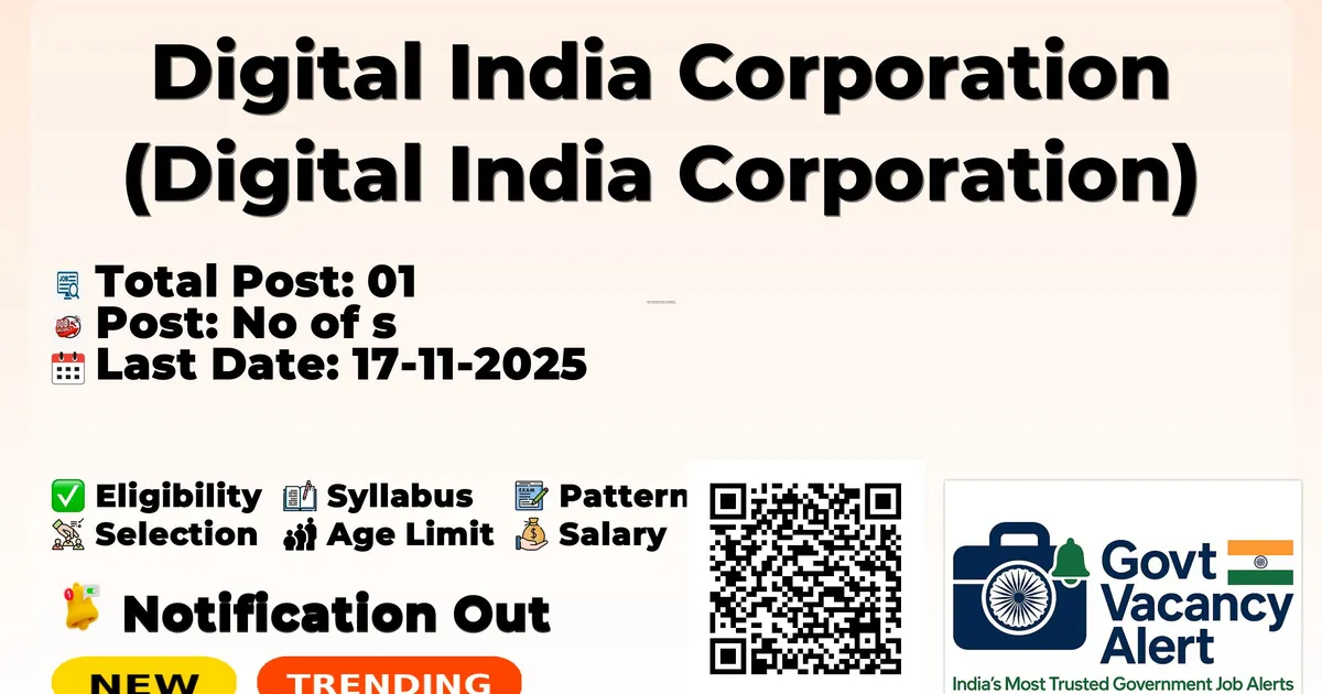 Eligible candidates may apply ONLINE: https://ora.digitalindiacorporation.in/ Last Date for Apply Online: 17-11-2025