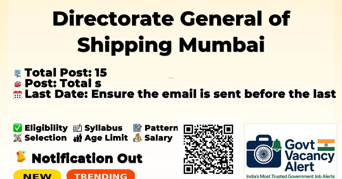 Directorate General of Shipping Mumbai Recruitment 2026: Directorate General of Shipping Mumbai has released the official notification for 15 Naval Architects posts, inviting applications from eligible candidates. This recruitment provides an excellent opportunity for candidates seeking government jobs.