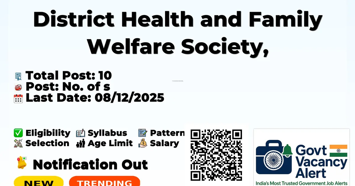 District Health and Family Welfare Society (DHFWS) has released an official notification for the recruitment of 10 Medical Officer, Staff Nurse and More Posts. Interested and eligible candidates can apply Offline through the official DHFWS website. The last date to submit the application form is 08-12-2025. In this article, you’ll find the DHFWS Medical Officer, Staff Nurse and More Posts recruitment details, including eligibility criteria, age limit, salary structure, selection process, application steps, and direct links to the official notification and Offline application form.