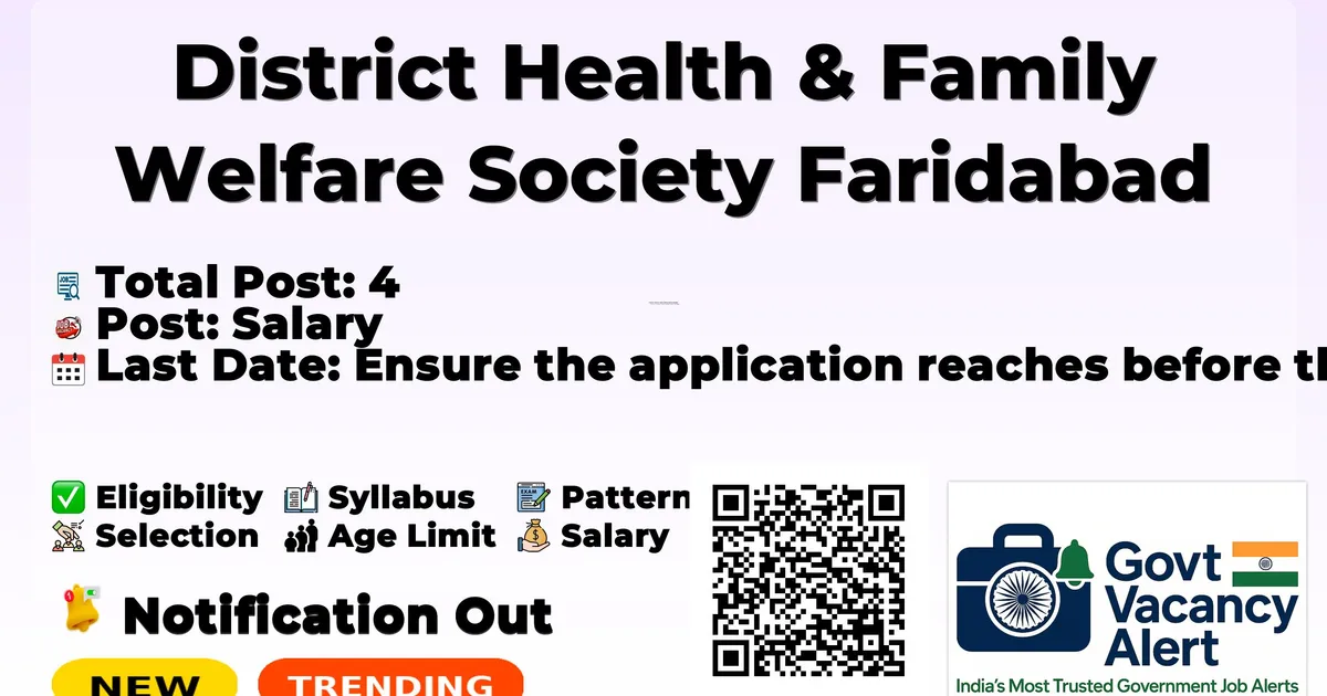 District Health & Family Welfare Society Faridabad (DH&FW Faridabad) Recruitment 2026: District Health & Family Welfare Society Faridabad has released the official notification for 4 ATF posts, inviting applications from eligible candidates. This recruitment provides an excellent opportunity for candidates seeking stable and well-paid government jobs.