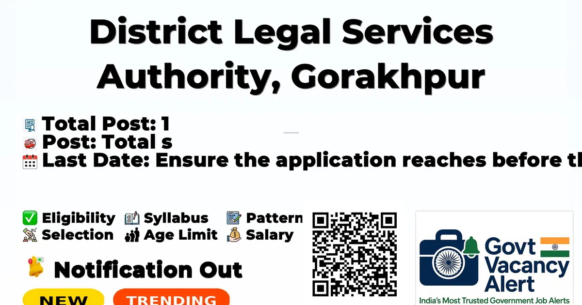 District Legal Services Authority, Gorakhpur (DLSA Gorakhpur) has officially released a notification for the recruitment of 1 Assistant Legal Aid Defense Counsel Posts. This recruitment drive offers a great opportunity for candidates looking for government jobs. Interested and eligible candidates can download the application form from the official website and submit it offline.