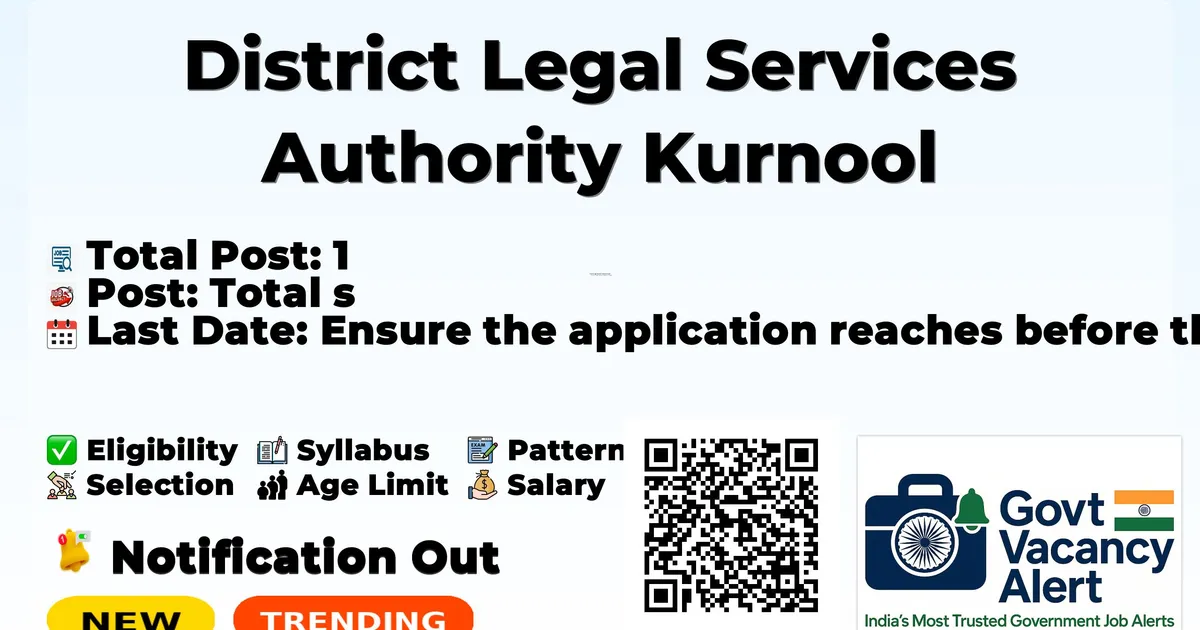 District Legal Services Authority Kurnool (DLSA Kurnool) Recruitment 2026: District Legal Services Authority Kurnool has released the official notification for 1 Deputy Chief Legal Aid Defense Counsel posts, inviting applications from eligible candidates. This recruitment provides an excellent opportunity for candidates seeking stable and well-paid government jobs.