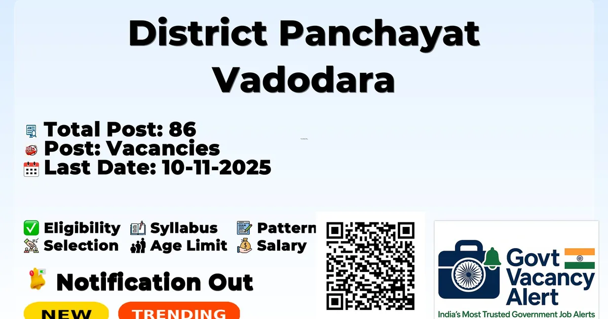 District Panchayat Vadodara has released an official notification for the recruitment of 86 Staff Nurse, CHO and More Posts. Interested and eligible candidates can apply Online through the official District Panchayat Vadodara website. The last date to submit the application form is 10-11-2025. In this article, you’ll find the District Panchayat Vadodara Staff Nurse, CHO and More Posts recruitment details, including eligibility criteria, age limit, salary structure, selection process, application steps, and direct links to the official notification and Online application form.