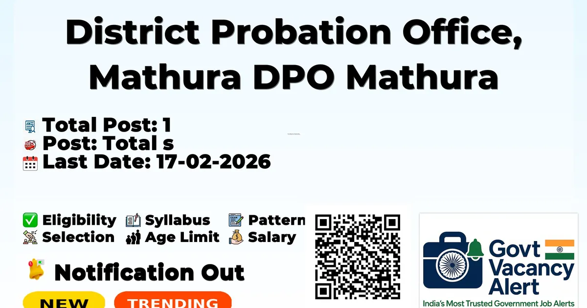District Probation Office Mathura DPO Mathura has released an official notification for the recruitment of 01 Support Person Posts. Interested and eligible candidates can apply Offline through the official DPO Mathura website. The last date to submit the application form is 17-02-2026. In this article, you’ll find the DPO Mathura Support Person Posts recruitment details, including eligibility criteria, age limit, salary structure, selection process, application steps, and direct links to the official notification and Offline application form.