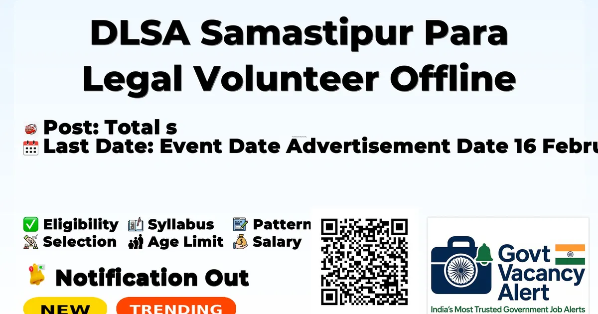 The Office of the District Legal Services Authority (DLSA), Samastipur has invited applications for the selection of Para Legal Volunteers (PLVs) under Advertisement No. 02/2026. This is a purely voluntary, non-salaried service and not a government job appointment, aimed at providing legal awareness and support to weaker and marginalized sections of society.