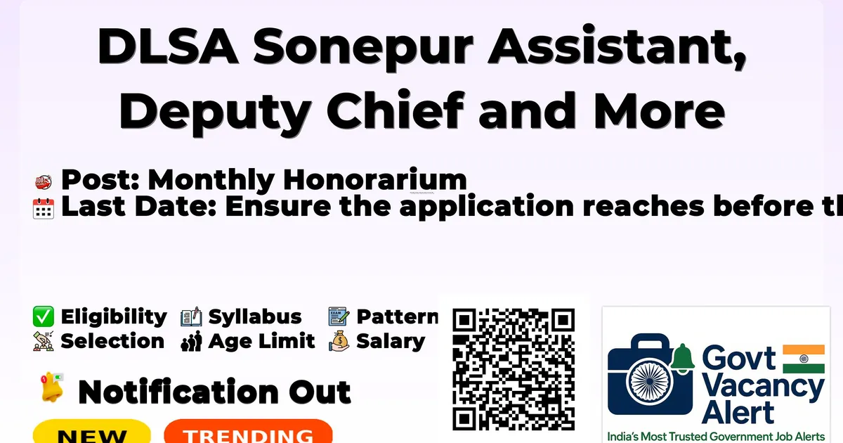 District Legal Services Authority Sonepur (DLSA Sonepur) has released an official notification for the recruitment of 03 Assistant, Deputy Chief and More Posts. Interested and eligible candidates can apply Offline through the official DLSA Sonepur website. The last date to submit the application form is 21-02-2026. In this article, you’ll find the DLSA Sonepur Assistant, Deputy Chief and More Posts recruitment details, including eligibility criteria, age limit, salary structure, selection process, application steps, and direct links to the official notification and Offline application form.
