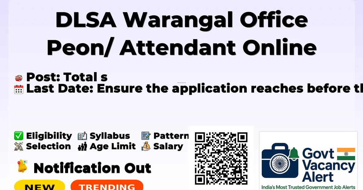 DLSA Warangal Office Peon/ Attendant Online Form 2026 — Total Posts
