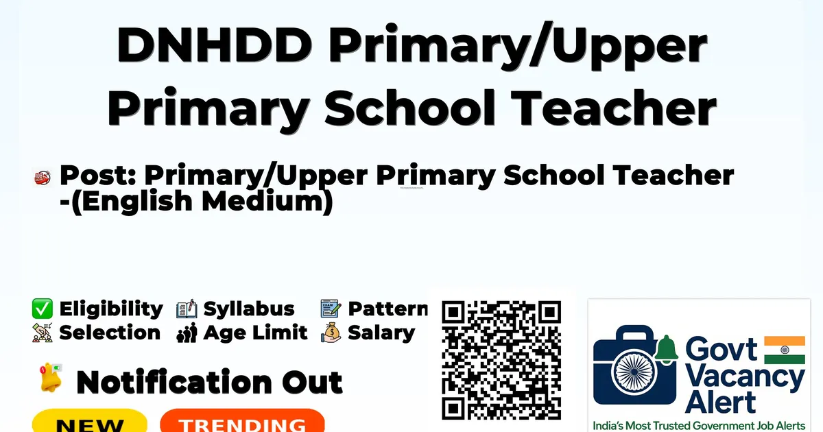 UT Administration of Dadra and Nagar Haveli and Daman & Diu (DNHDD) has released an official notification for the recruitment of 281 Primary/Upper Primary School Teacher Posts. Interested and eligible candidates can apply Online through the official DNHDD website. The last date to submit the application form is 01-01-2026. In this article, you’ll find the DNHDD Primary/Upper Primary School Teacher Posts recruitment details, including eligibility criteria, age limit, salary structure, selection process, application steps, and direct links to the official notification and Online application form.