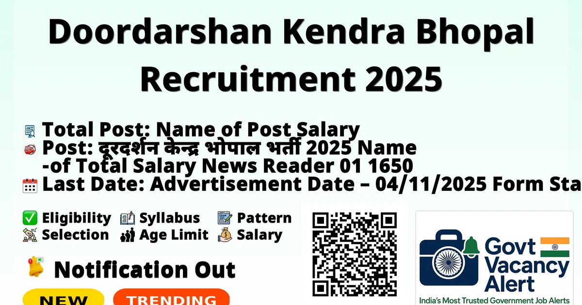 | दूरदर्शन केन्द्र भोपाल भर्ती 2025 | ||