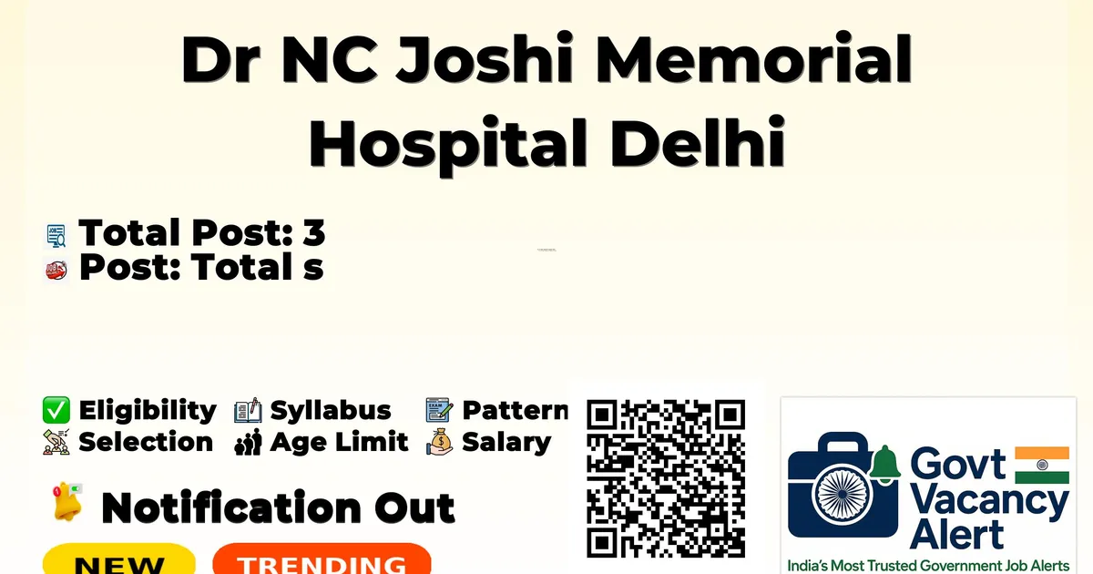 Dr NC Joshi Memorial Hospital Delhi Recruitment 2026: Dr NC Joshi Memorial Hospital Delhi is conducting a Walk-in Interview for 3 Junior Resident posts. This recruitment provides an excellent opportunity for eligible candidates to attend the interview directly without any prior online application. The Walk-in Interview is scheduled on 24-03-2026. Candidates are strongly advised to report at the venue with all required documents well before the scheduled time. Below, you can find complete details of Junior Resident Walk-in Recruitment 2026, including vacancy breakdown, eligibility, age limit, salary, walk-in schedule, venue, and important links. Advertisement Company Name Dr NC Joshi Memorial Hospital Delhi Post Name Junior Resident No of Posts 3 Advt No F.5(10)/2017/JMHI/Admn/1384-138 Salary Rs. 56,100/- in Level 10 plus usual allowances Qualification MBBS degree Age Limit Max: 40 years Walk-in Date 24 March 2026 Apply Mode Walk-in Job Type Ad-hoc Candidates who are interested in applying for the Dr NC Joshi Memorial Hospital Delhi Recruitment 2026 should first download and carefully read the official notification PDF. The notification contains complete details about vacancy distribution, eligibility criteria, age limit, stipend/salary, selection process, important dates, and application instructions. Reading the official document is important to ensure that you meet all requirements before submitting the application form. Download Dr NC Joshi Memorial Hospital Delhi Junior Resident Job 2026 Notification PDF Post Name Total Posts Junior Resident 3 Total 3 Trending Govt Jobs SSB Odisha Junior Assistant and Junior Clerk Online Form 2026 IDBI Bank Junior Assistant Manager Online Form 2026 AIIMS NORCET 10 Online Form 2026 HPCL 731 Engineers, JEA and More Online Form 2026 Indian Navy Agniveer SSR, MR & SSR (Medical) Online Form 2026 MBBS degree from MCI/NMC recognized university/Institute with internship completion certificate. Registration with DMC is compulsory. Internship must be completed between 23-03-2024 to 22-03-2026. Category Fee General/OBC Nil SC/ST Nil Maximum Age Limit: 40 years Age Relaxation: SC/ST: 45 years, OBC: 43 years as per circular No. F.No.121/126/2010/H&FW/1996-2045 dated 10/06/2011 Rs. 56,100/- in Level 10 plus usual allowances per month. Event Date Notification Date 10 March 2026 Walk-in Interview Date 24 March 2026 Walk-in Interview Read the official notification carefully before attending the interview. Candidates must report at the venue as per the reporting time mentioned in the notification. Carry all original documents along with one set of self-attested photocopies such as ID proof, educational certificates, experience certificates (if required), and category certificate (if applicable). Bring the duly filled application form if required in the notification. Verify eligibility criteria before attending the interview. Candidates are advised to reach the venue well in advance to complete registration formalities. Keep extra passport-size photographs for submission if required. Link Description Link Official Notification PDF Click here Official Website Click here