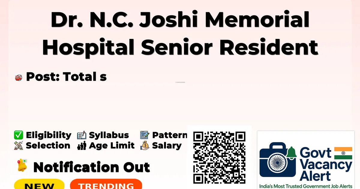 Dr. N.C. Joshi Memorial Hospital Senior Resident Walkin 2026 — Total Posts