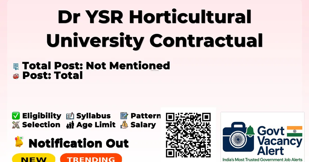 Join Arattai Channel Advertisement Dr YSR Horticultural University Recruitment 2025 for posts of Contractual Teacher. Candidates with Any Bachelors Degree Can attend the walkin. The Walk-in starts from Available Soon, and ends on 18-11-2025. For detailed information please visit Dr YSR Horticultural University official website, drysrhu.ap.gov.in.