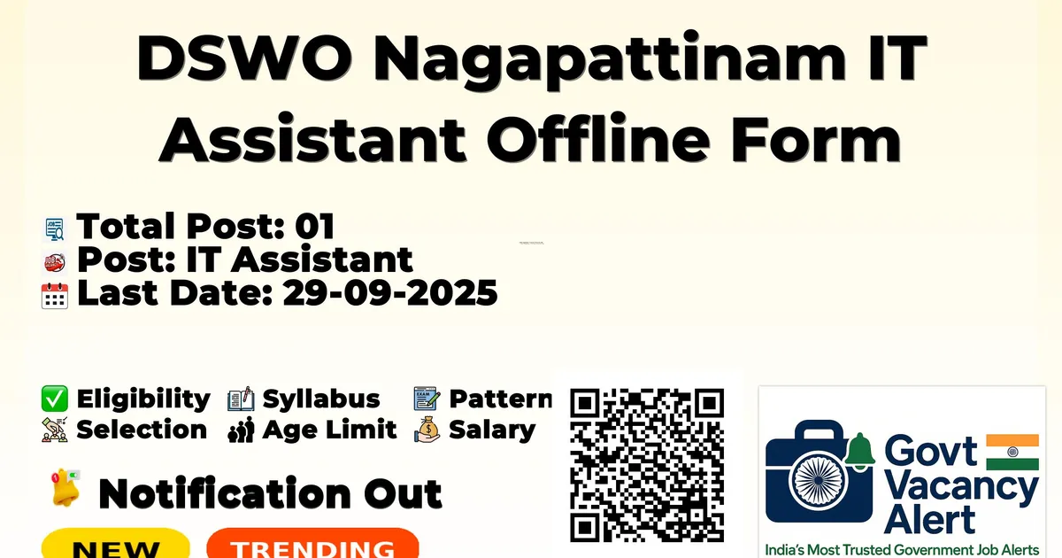 The DSWO Nagapattinam IT Assistant Recruitment 2025 Notification PDF has been released on 11-09-2025 at nagapattinam.nic.in. Check the complete job details, vacancy, age limit, application fee, selection process and how to apply from the article. You can Check all Latest Sarkari Result Updates of All Central Government Jobs and State Government Jobs.