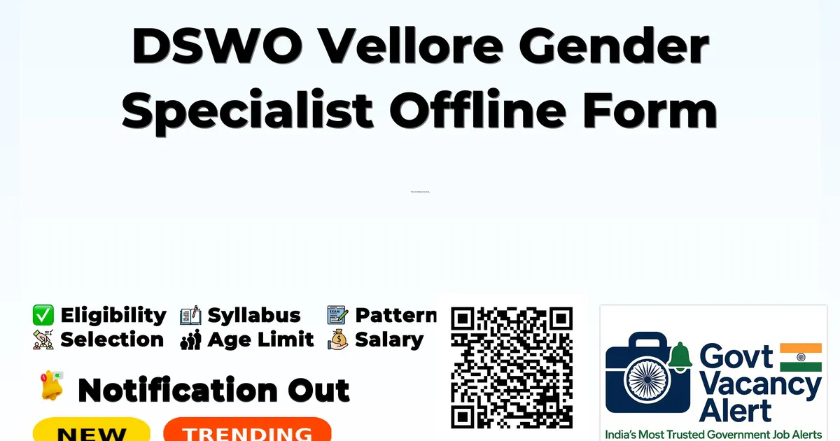 District Social Welfare Office Chennai Vellore (DSWO Vellore) has released an official notification for the recruitment of 02 Gender Specialist Posts. Interested and eligible candidates can apply Offline through the official DSWO Vellore website. The last date to submit the application form is 31-10-2025. In this article, you’ll find the DSWO Vellore Gender Specialist Posts recruitment details, including eligibility criteria, age limit, salary structure, selection process, application steps, and direct links to the official notification and Offline application form.