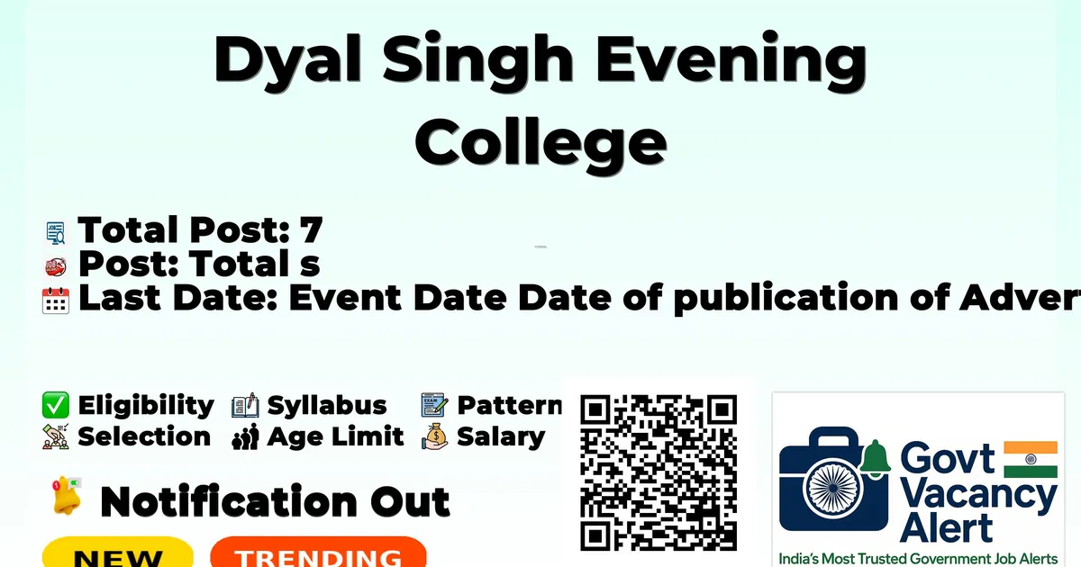 Dyal Singh Evening College has released an official notification for the recruitment of 7 Non-Teaching Staff Posts. Interested and eligible candidates can apply Online through the official Dyal Singh Evening College website. The last date to submit the application form is 21-03-2026. In this article, you'll find the Non-Teaching Staff recruitment details, including eligibility criteria, age limit, salary structure, selection process, application steps, and direct links to the official notification and application form. Advertisement Company Name Dyal Singh Evening College Post Name Non-Teaching Staff No of Posts 7 Advt No DSCE/Advt./NT/2026/871 Salary Pay Levels 1,2,4,7 as per 7th CPC Qualification Bachelor's Degree, 12th-pass Age Limit Max age 35 years for Senior Personal Assistant, Assistant, Junior Assistant. Max age 32 years for Library Attendant. Last Date 21-03-2026 Apply Mode Online Job Type Full Time Trending Govt Jobs IAF Agniveer New Recruitment 2026 UPSC CSE Online Form 2026 DSSSB 911 AE, JE & More Online Form 2026 RRB 22000 Group D Online form 2026 MCL 677 Various Vacancies Online Form 2026 Candidates should download and read the Dyal Singh Evening College Jobs 2026 notification PDF carefully to check vacancy details, eligibility, age limit, and application instructions. The notification also includes important dates and selection process details. The direct download link is available in the Important Links section below. Download Dyal Singh Evening College Job 2026 Notification PDF Post Name Total Posts Senior Personal Assistant 1 Assistant 1 Junior Assistant 4 Library Attendant 1 Total 7 Senior Personal Assistant: Bachelor's Degree, Minimum 03 years' experience as Personal Assistant in Pay Level 6 or 5 years as Stenographer in Pay Level 4 or above, Proficiency in English/Hindi Stenography speed: 120 w.p.m. in English or 100 w.p.m. in Hindi, English/Hindi Typing speed: 35 w.p.m. in English or 30 w.p.m. in Hindi, Knowledge of Computer Applications. Assistant: Bachelor's Degree, Two years experience as Junior Assistant Equivalent posts in University/Research/Establishment/Central/State Govt./PSU/Autonomous Bodies or equivalent pay package in reputed private Companies corporate banks with a minimum annual turnover of at least Rs.200 Crores or more, Speed in English Typing @ of 35 wpm or Speed in Hindi Typing @ 30 wpm, Proficiency in Computer Operations. Junior Assistant: Bachelor's Degree, English Typing speed @ 35 w.p.m. OR Hindi Typewriting @ 30w.p.m., Proficiency in Computer Operations. Library Attendant: 10+2 or its equivalent examination, Certificate course Library Science from a recognized Institution. Category Fee General/Unreserved candidates Rs. 800/- OBC (NCL)/EWS/ SC/ST/PwD/Female Rs. 600/- Senior Personal Assistant: Maximum age 35 years. Assistant: Maximum age 32 years. Junior Assistant: Maximum age 32 years. Library Attendant: Maximum age 32 years. Senior Personal Assistant: Pay Level-7 Assistant: Pay Level-4 Junior Assistant: Pay Level-2 Library Attendant: Pay Level-1 All posts: Pay Levels 1,2,4,7 as per 7th CPC Event Date Date of publication of Advertisement 28 February 2026 Last Date for filling online Application Form 21 March 2026 Opening date of Online Application 28 February 2026 Closing date of Online Application 21 March 2026 Preliminary Test (MCQ) Examination (Main) Skill Test Candidates who meet the eligibility criteria can apply online for the Dyal Singh Evening College Various Posts Recruitment 2026. Applications must be submitted online on or before 21-03-2026. To apply directly, use the Apply Online link provided in the Important Links section. Alternatively, candidates may visit the official website of Dyal Singh Evening College to complete the application. Fill out the application form carefully with correct personal, educational, and contact details. Upload required documents such as photograph, signature, and certificates in the prescribed format. Pay the application fee online, if applicable. Review all details carefully before submitting the form. Take a printout or save a copy of the submitted application for future reference. Link Description Link Official Notification PDF Click here Apply Online Click here Official Website Click here