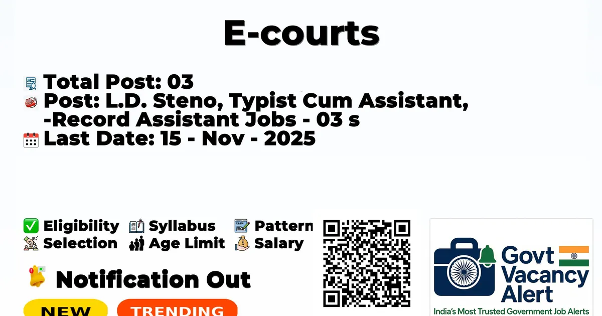 E-courts — L.D. Steno, Typist Cum Assistant, Record Assistant Jobs - 03 Posts