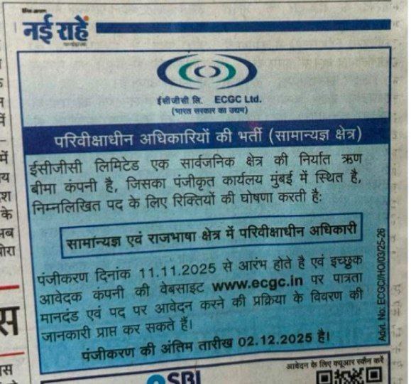 ECGC PO Recruitment 2025 – Export Credit Guarantee Corporation Of India