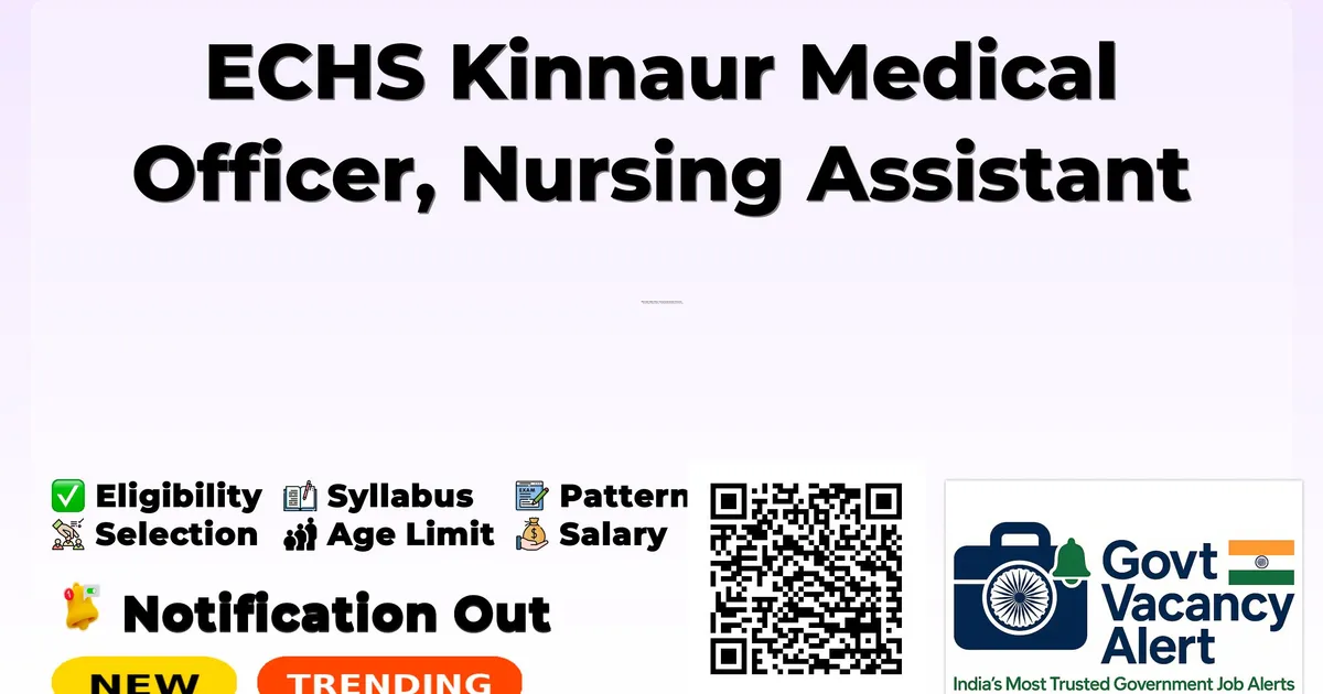 Ex-servicemen Contributory Health Scheme Kinnaur (ECHS Kinnaur) has released an official notification for the recruitment of 03 Medical Officer, Nursing Assistant and More Posts. Interested and eligible candidates can apply Offline through the official ECHS Kinnaur website. The last date to submit the application form is 03-11-2025. In this article, you’ll find the ECHS Kinnaur Medical Officer, Nursing Assistant and More Posts recruitment details, including eligibility criteria, age limit, salary structure, selection process, application steps, and direct links to the official notification and Offline application form.