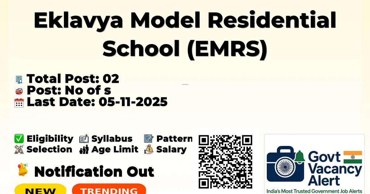Eklavya Model Residential School (EMRS) has released an official notification for the recruitment of 02 PGT, Housekeeping Staff Posts. Interested and eligible candidates can apply Offline through the official EMRS website. The last date to submit the application form is 05-11-2025. In this article, you’ll find the EMRS PGT, Housekeeping Staff Posts recruitment details, including eligibility criteria, age limit, salary structure, selection process, application steps, and direct links to the official notification and Offline application form.
