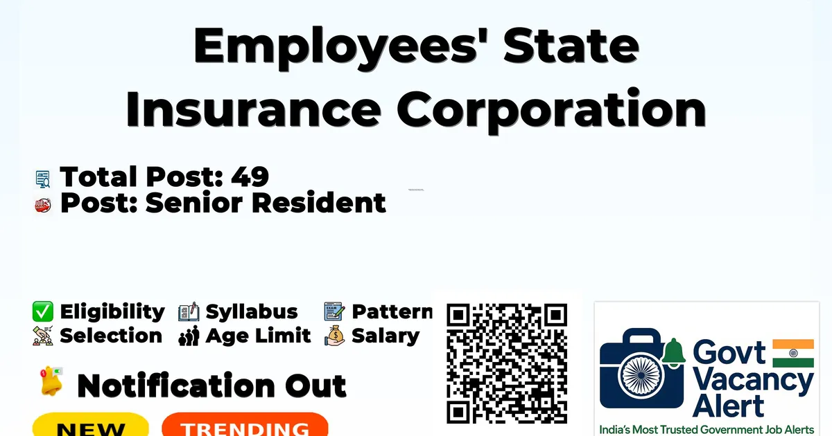 Employees State Insurance Corporation (ESIC) Recruitment 2026 for 49 posts of Senior Residents. Candidates with MBBS Can attend the walkin. The Walk-in on 20-01-2026. For detailed information please visit ESIC official website, esic.gov.in.