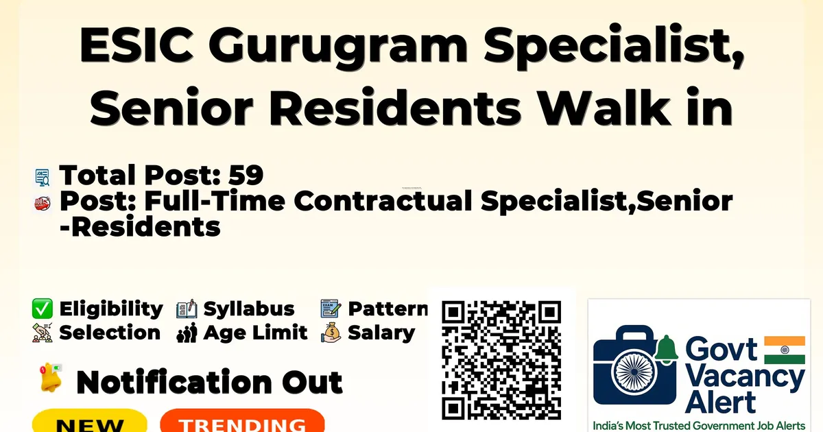 ESIC Gurugram Specialist, Senior Residents Walk in 2025
