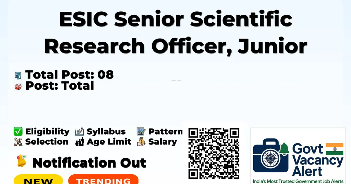 ESIC Senior Scientific Research Officer, Junior Research Officer Walk in 2025