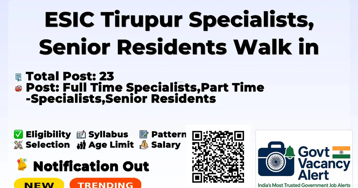 ESIC Tirupur Specialists, Senior Residents Walk in 2025