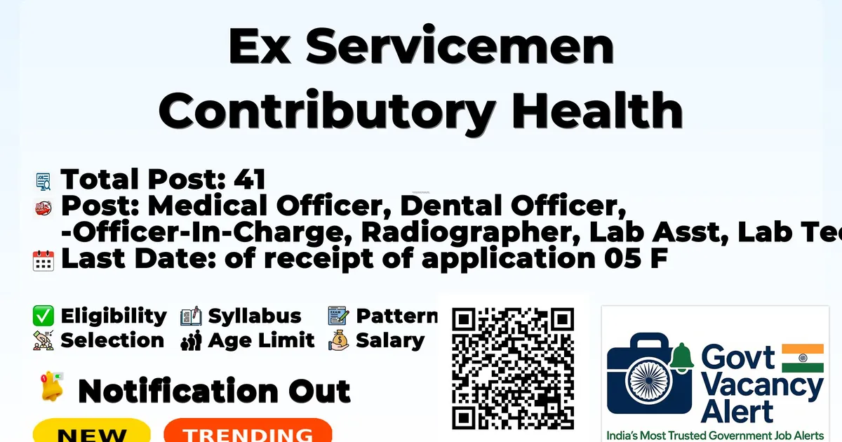 Ex Servicemen Contributory Health Scheme (ECHS) has released an official notification for the recruitment of 41 MO, Pharmacist And More Posts. Interested and eligible candidates can apply Offline through the official ECHS website. The last date to submit the application form is 05-02-2026. In this article, you’ll find the ECHS MO, Pharmacist And More Posts recruitment details, including eligibility criteria, age limit, salary structure, selection process, application steps, and direct links to the official notification and Offline application form.