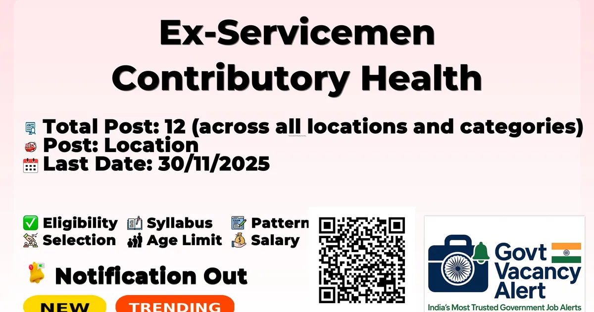Ex Servicemen Contributory Health Scheme (ECHS) has released an official notification for the recruitment of 12 Chowkidar, Driver and More Posts. Interested and eligible candidates can apply Offline through the official ECHS website. The last date to submit the application form is 30-11-2025. In this article, you’ll find the ECHS Chowkidar, Driver and More Posts recruitment details, including eligibility criteria, age limit, salary structure, selection process, application steps, and direct links to the official notification and Offline application form.