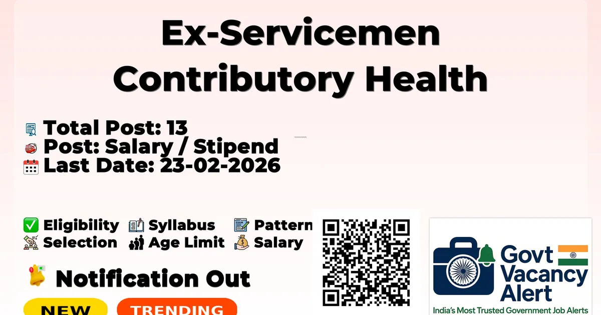 Company Name Ex-Servicemen Contributory Health Scheme (ECHS) Post Name Medical Specialist, Radiologist, Other Posts (Medical Officer, Dental Technician etc.) No of Posts 13 Salary Rs.21,800 – 1,30,000/- Per Month Qualification MD / MS / MBBS / Diploma / Class 8th Last Date for Apply 23-02-2026 Apply Mode Offline Job Type Contract Official Website www.echs.gov.in