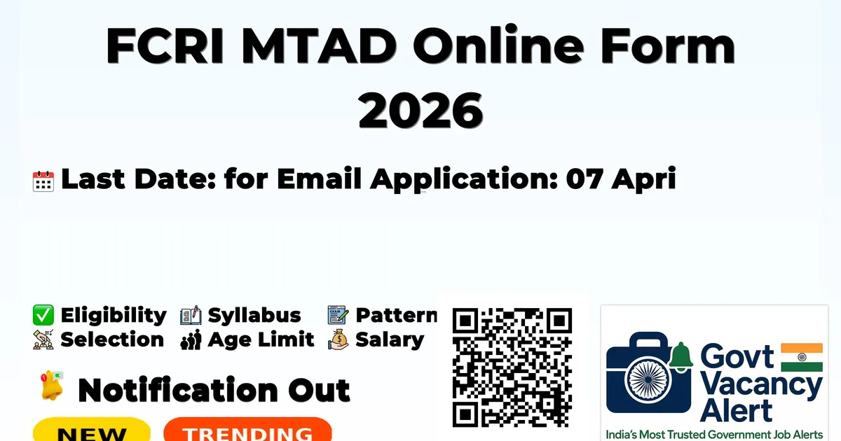 FCRI MTAD Online Form 2026 — Latest Government Job