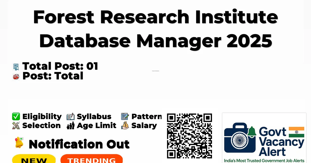 Forest Research Institute Recruitment 2025 for 01 posts of Database Manager. Candidates with B.Sc Can attend the walkin. The Walk-in interview on 26-11-2025. For detailed information please visit Forest Research Institute official website, fri.icfre.gov.in.
