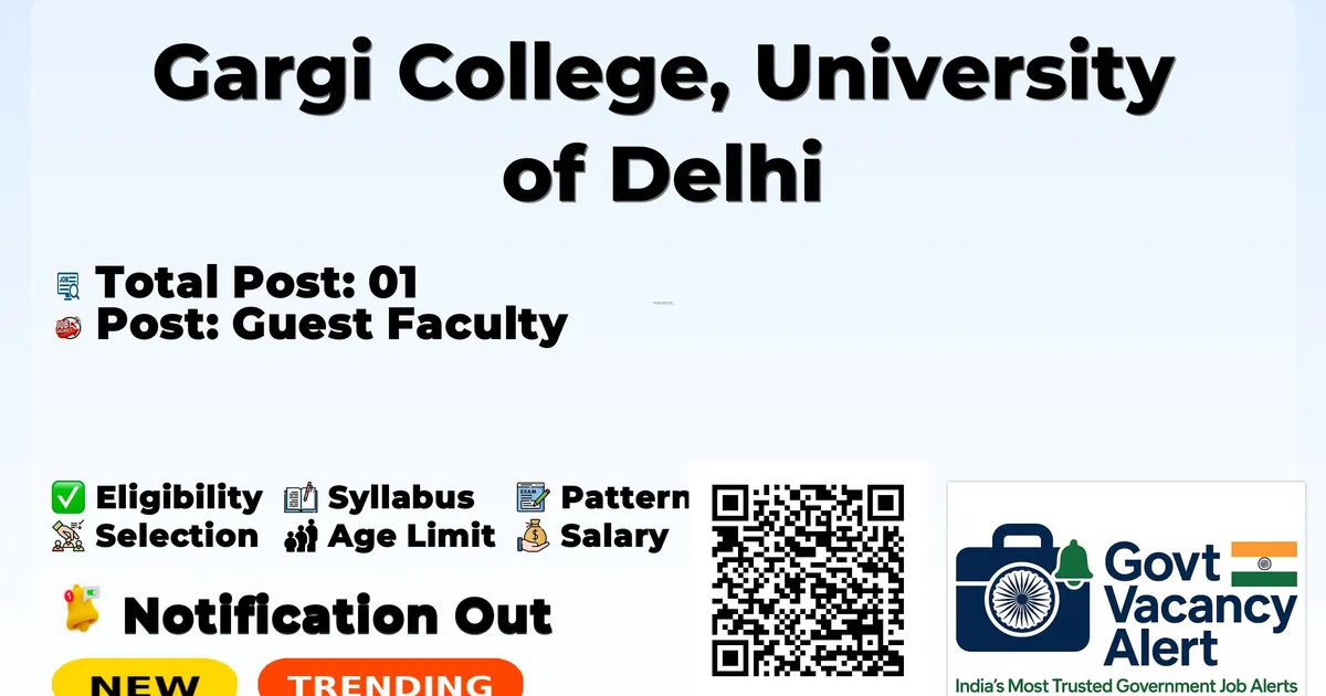 Company Name Gargi College, University of Delhi Post Name Guest Faculty No of Posts 01 Department Political Science Notification Date 08 January 2026 Walk-in Date 16 January 2026 Official Website www.gargicollege.in Apply Mode Walk-in