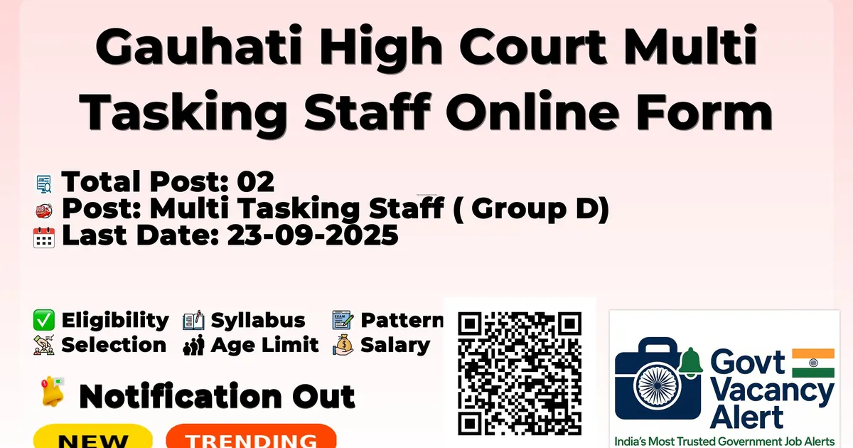 The Gauhati High Court Recruitment 2025 for 02 posts of Multi Tasking Staff. Candidates with 12TH, 8TH Can Apply Online. The online application opens on 08-09-2025, and closes on 23-09-2025. The candidate shall apply online through Gauhati High Court website, ghconline.gov.in.