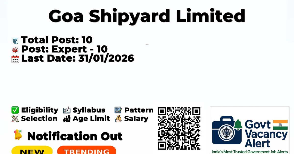 Goa Shipyard Limited (GSL), a Schedule ‘B’ Mini Ratna Category-I Central Public Sector Undertaking under the Ministry of Defence, engaged in designing and building ships for the Indian Navy, Indian Coast Guard and other customers, has invited applications from qualified and talented Indian Nationals for the recruitment of Experts/Specialists on fixed-term contract basis.