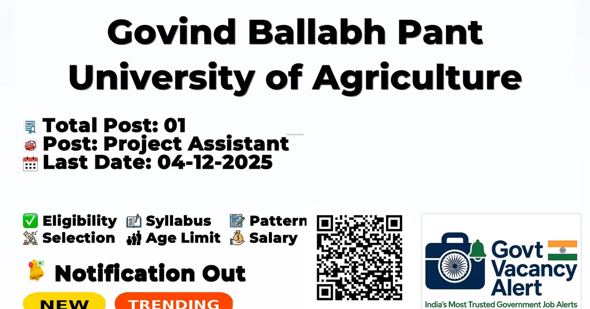 Company Name Govind Ballabh Pant University of Agriculture and Technology (GBPUAT) Post Name Project Assistant No of Posts 01 Salary Rs 18,000/- PM Qualification Any Graduate Start Date for Apply 22-11-2025 Last Date for Apply 04-12-2025 Official Website gbpuat.ac.in