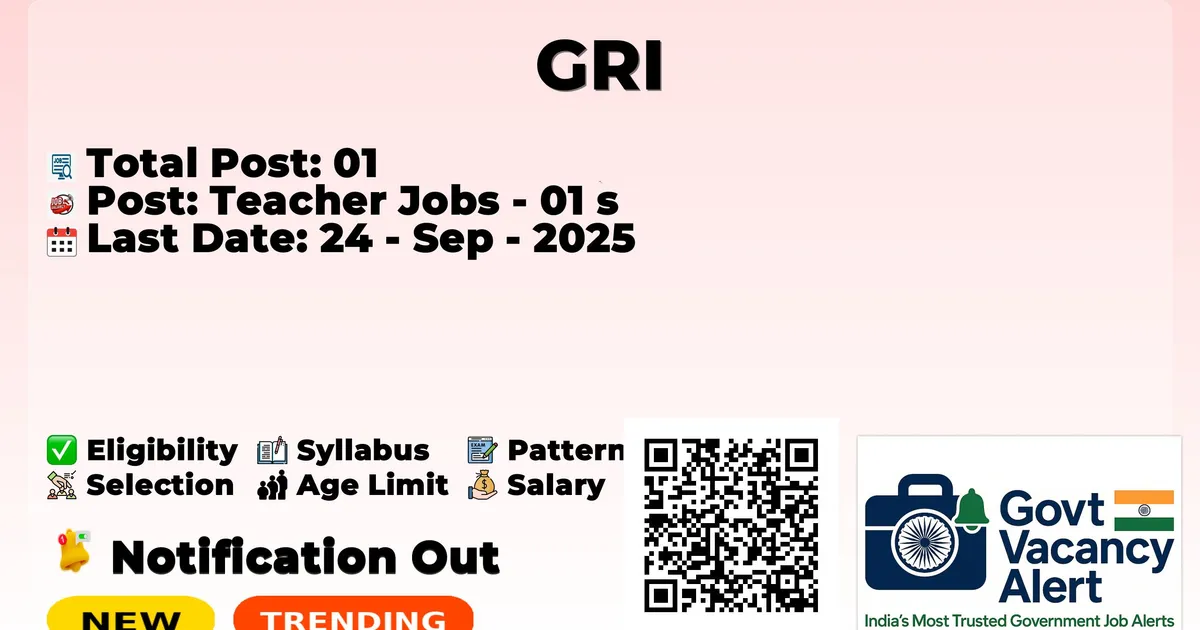 The Gandhigram Rural Institute (GRI Dindigul) has officially released the notification to fill the vacancies of 01 Teacher Posts. Interested and eligible candidates can use this opportunity to apply for these posts before the last date of application. Candidates who have completed their M.Sc, and Ph. D., can apply for the GRI Dindigul Recruitment 2025. The interested applicants can attend the walk-in interview. Here we have mentioned the education details, age limit, selection process, application fee, salary, and how to apply for these posts before the deadline. The application dates have already begun.