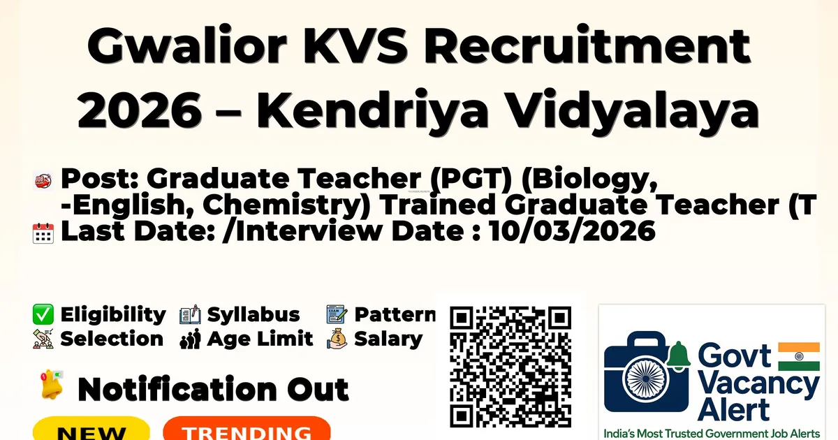 Gwalior KVS Recruitment 2026 – Kendriya Vidyalaya Vacancy