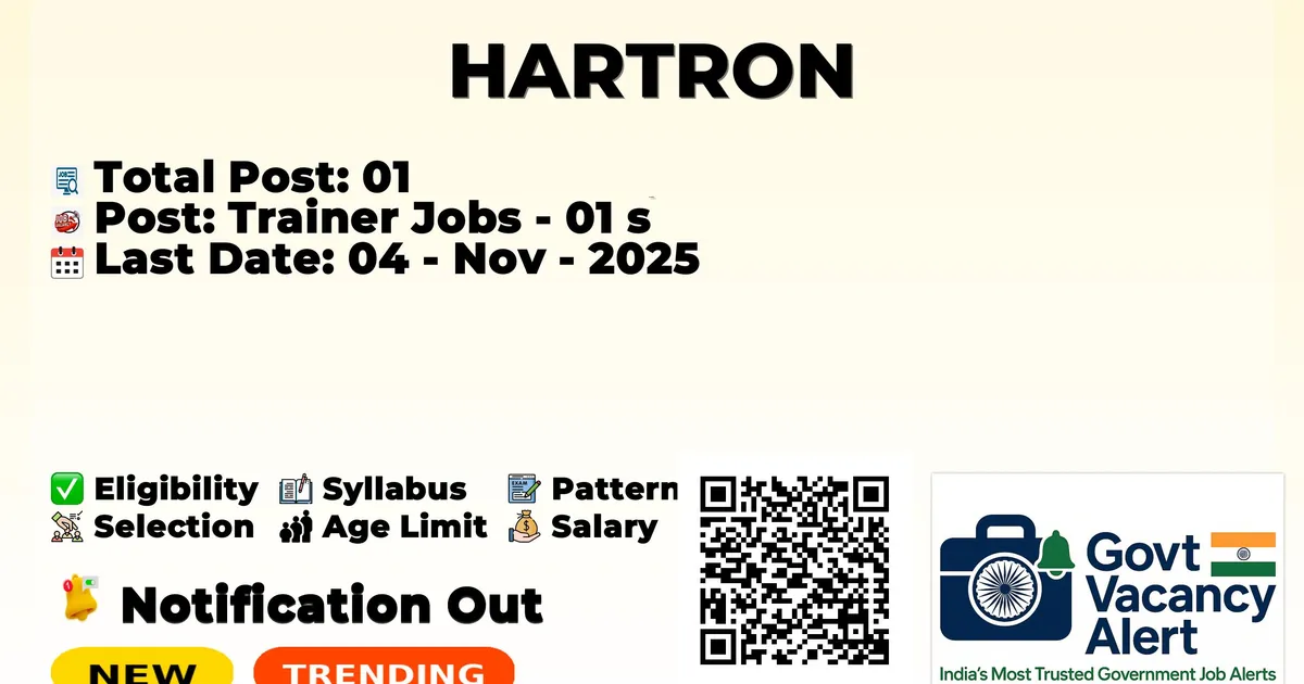 The Haryana State Electronics Development Corporation Limited (HARTRON) has officially released the notification to fill the vacancies of 01 Trainer Posts. Interested and eligible candidates can use this opportunity to apply for these posts before the last date of application. Candidates who have completed their B.E./B. Tech, M.E./M. Tech in Computer Science, Electronics Engineering, and MCA can apply for the HARTRON Notification 2025. The interested applicants can apply in online mode. Here we have mentioned the education details, age limit, selection process, application fee, salary, and how to apply for these posts before the deadline. The application dates have already begun.